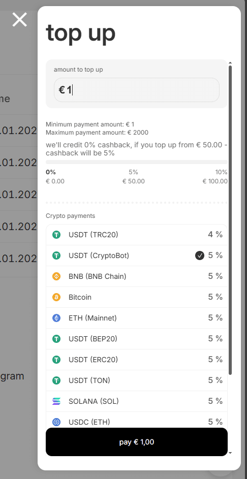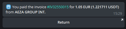 We purchase the currency using the methods specified in the bot, or we transfer the cryptocurrency to the specified address from our other wallet, without forgetting about the network that we have chosen. A few minutes later, we receive a notification about a successful replenishment of the balance.: