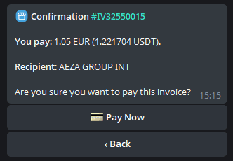 After you click "Pay", your browser will automatically open a conversation with CryptoBot in Telegram.: