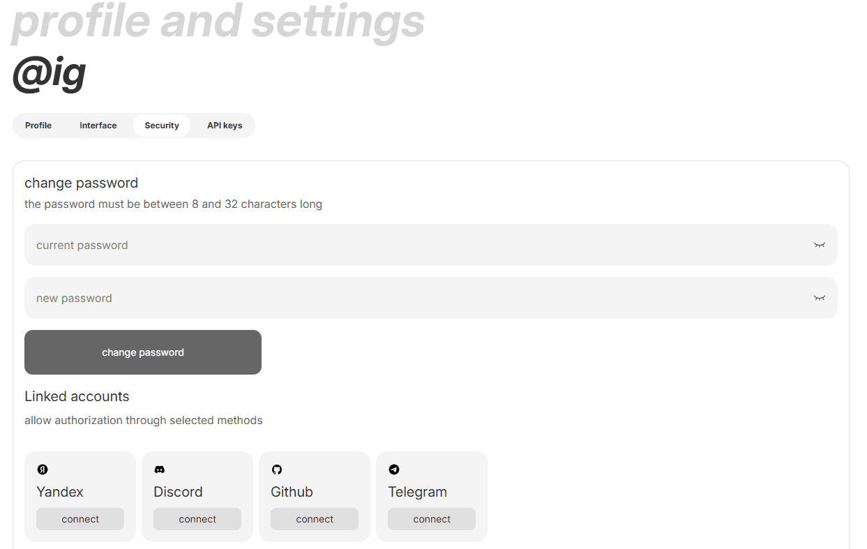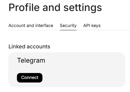 To start, we should go to the Personal Account Settings, to the "Security" page, direct link to which: After that, we will see a banner with Telegram linking