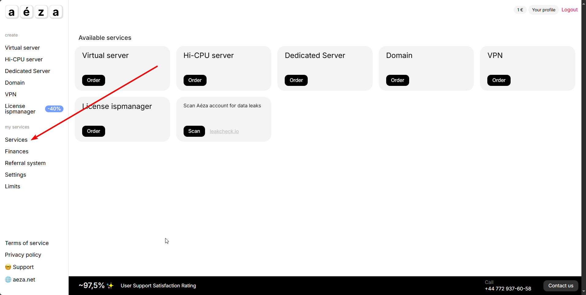 After logging into the personal account, go to the "My Services" section.