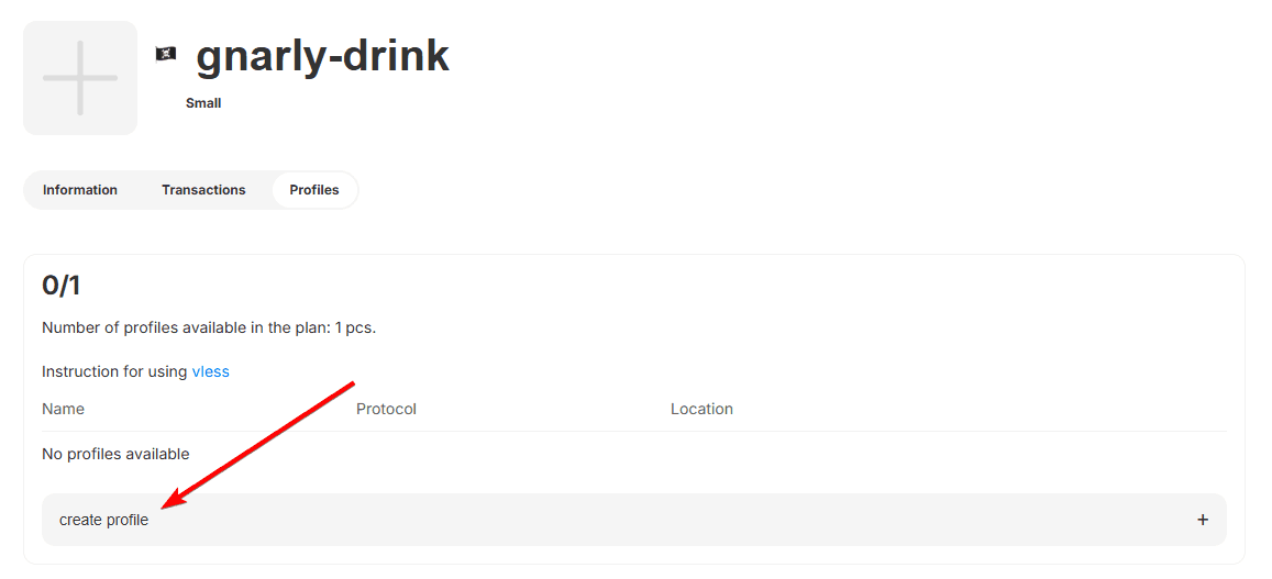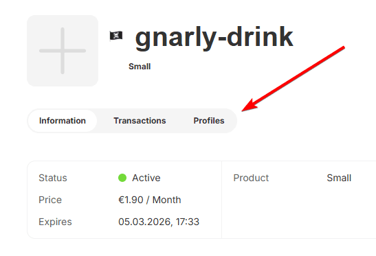 In the "Profiles" section, you will find detailed information about your service, as well as the number of available profiles. For each profile, you can set its name.