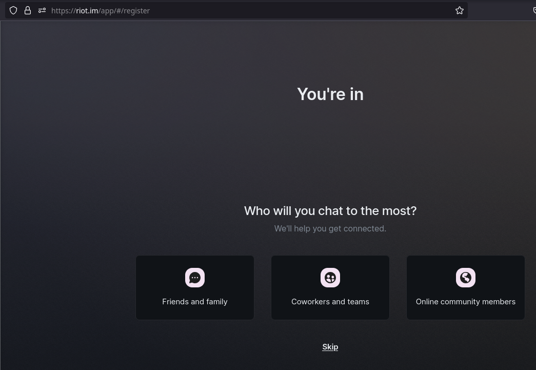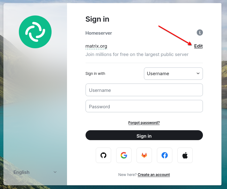 Including web clients that do not require installation of additional software, for example: https://app.element.io/#/login After going to the link, you need to change the server address to which the connection is made:
