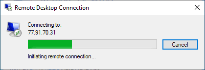 The process of connecting to the remote server begins:
