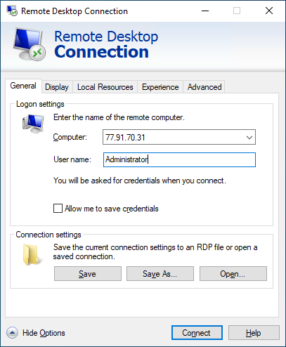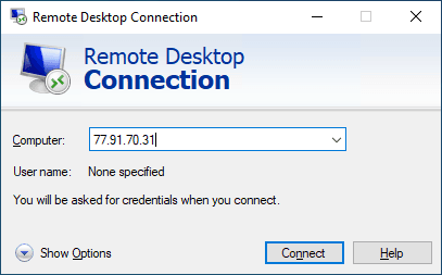 Connection to servers with Windows OS is carried out by default through RDP (Remote Desktop Protocol).