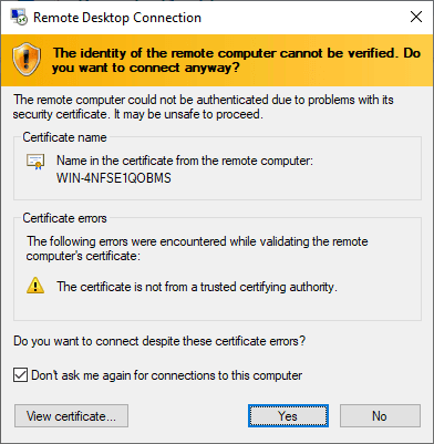 RDP connection
