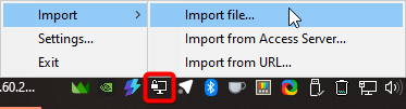 Launch the OpenVPN client, open the Windows tray (menu near system time) and right-click on the program icon. Import the config that we downloaded earlier: