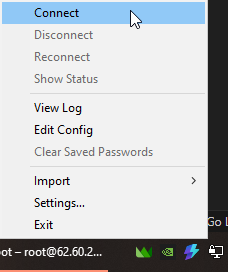 Open the Windows tray again and connect to the specified config: