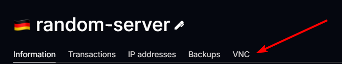 First, you need to access the VNC console. You can do this from the service page in your personal account.