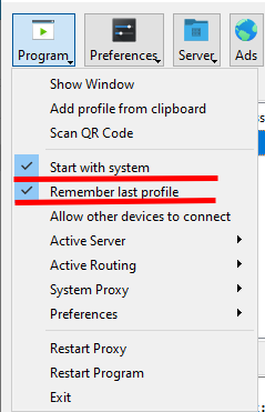 - "Remember last profile".