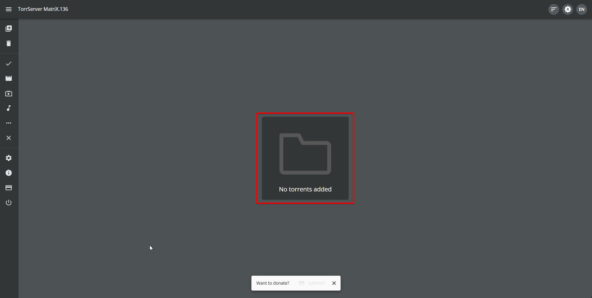 After going to the TorrServer panel link and entering the login and password specified in the "TorrServer.log" file, you will get to the main panel page.