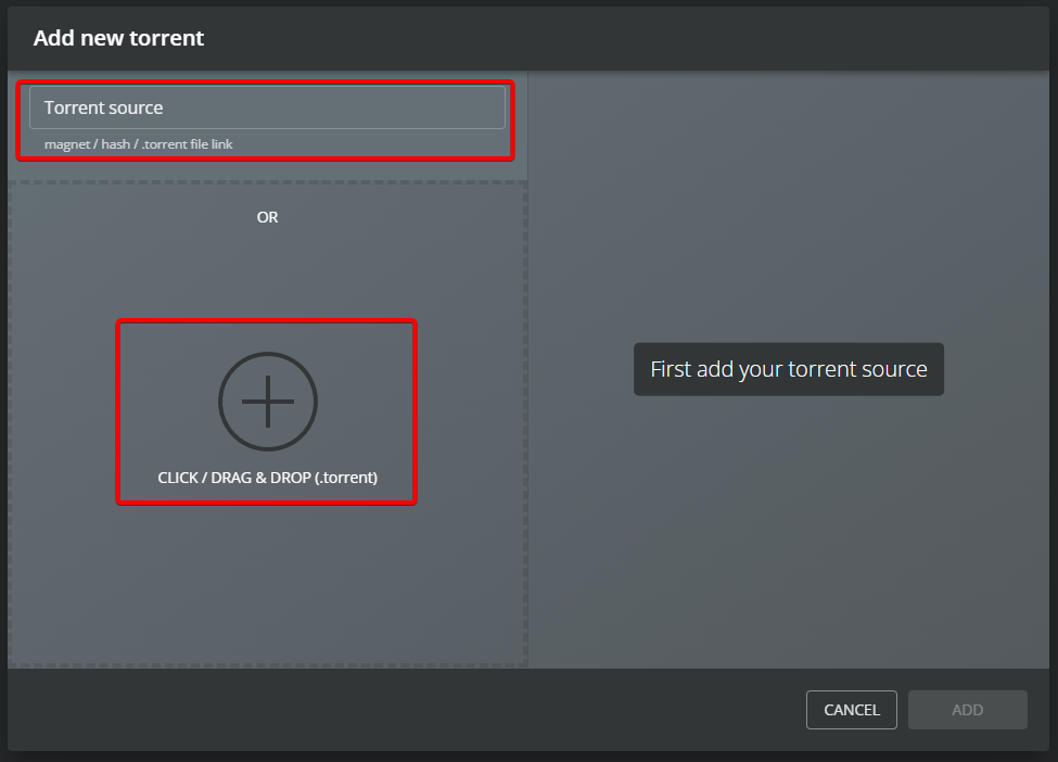 Then transfer the torrent file or paste the magnet link text (torrent file content).