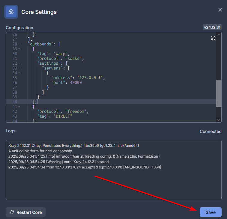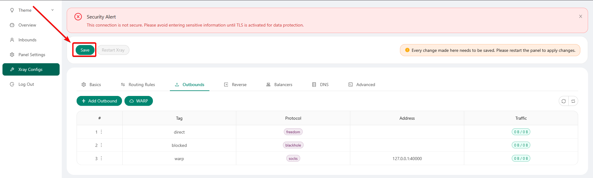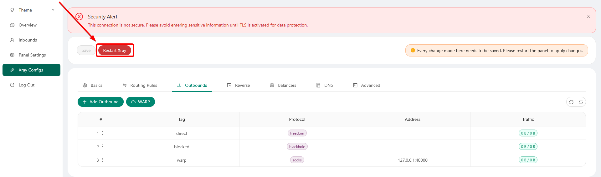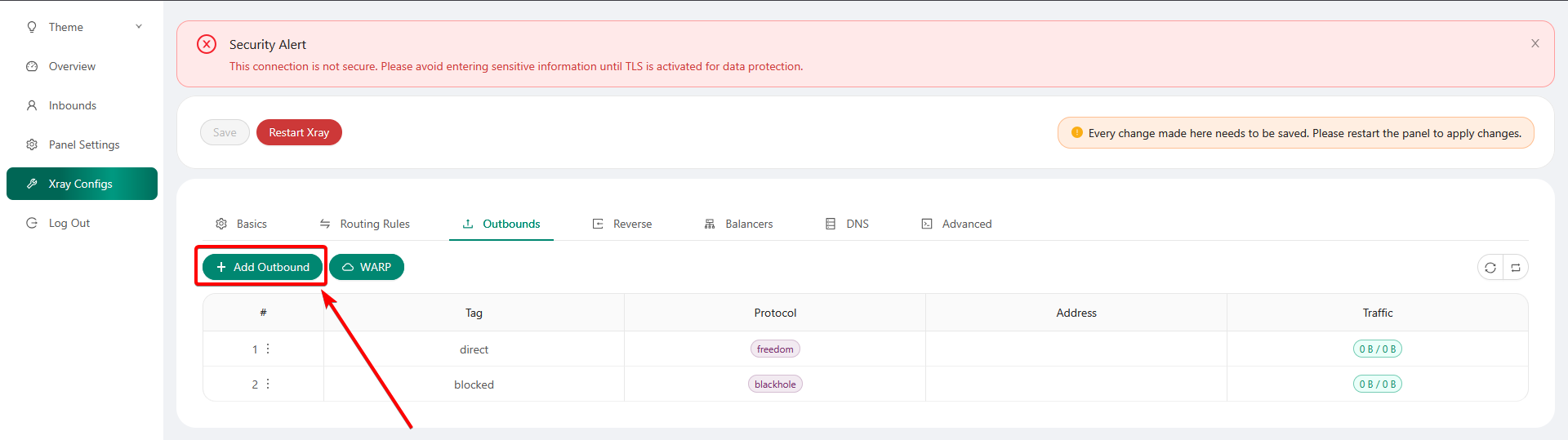 To get started, log into the 3x-ui package and go to the "Xray Settings" section