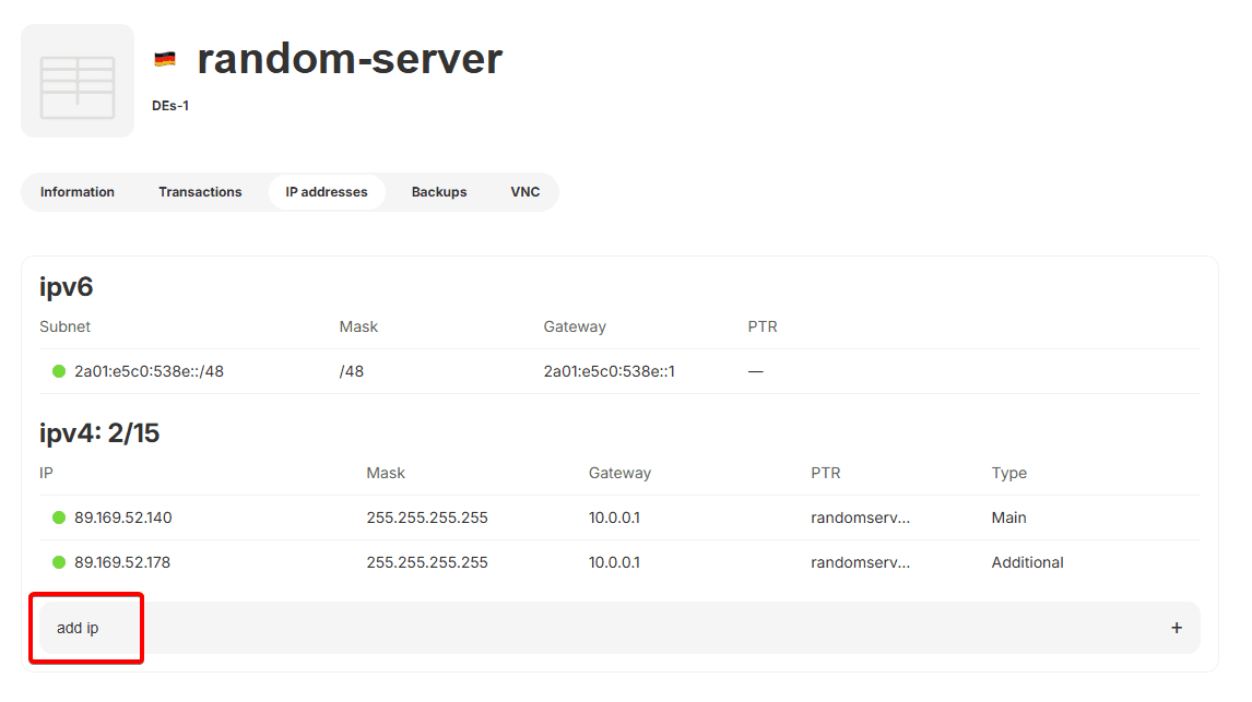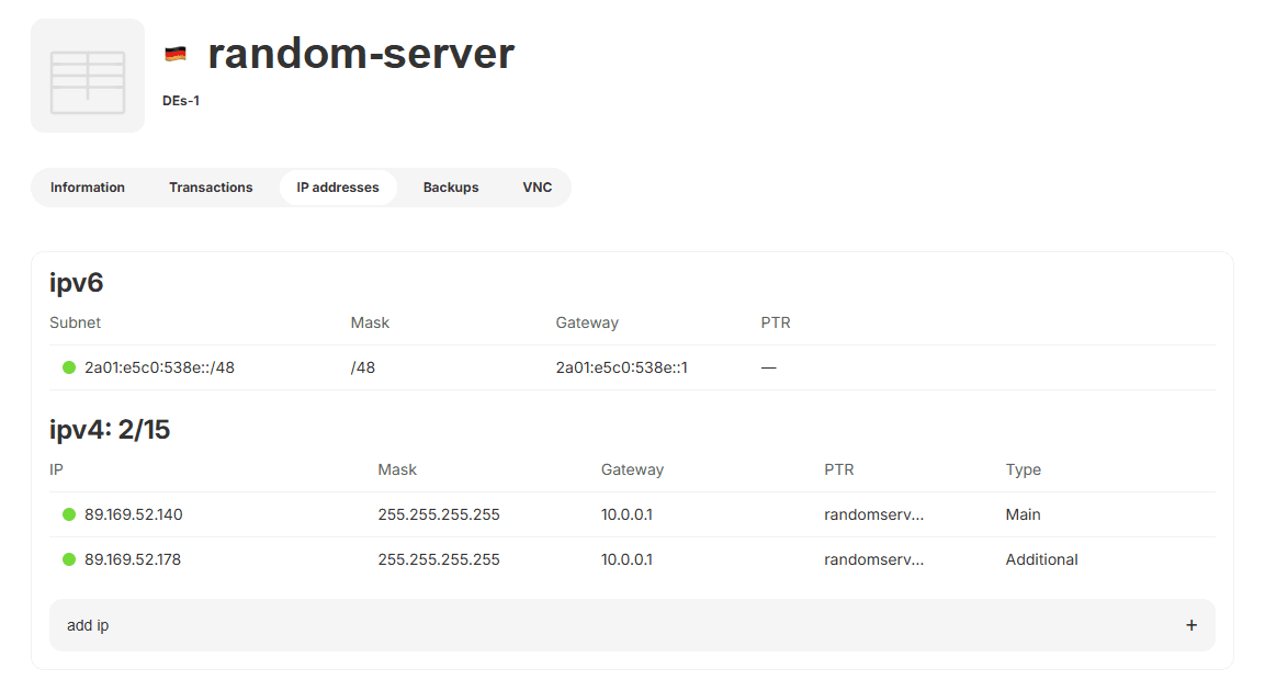 By default, we provide each server with a separate dedicated IP address, however, if you need to supplement it with additional addresses, this instenction is for you!