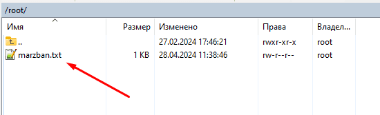 В корневом каталоге необходимо открыть файл "marzban.txt" с данными для подключения к панели управления Marzban: