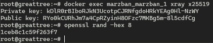 docker exec marzban_marzban_1 xray x25519Если вышла ошибка, попробуйте другую команду: