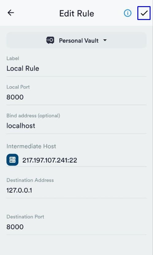 Задаем имя данному туннелю и нажимаем на "Галочку" чтобы сохранить настройки: