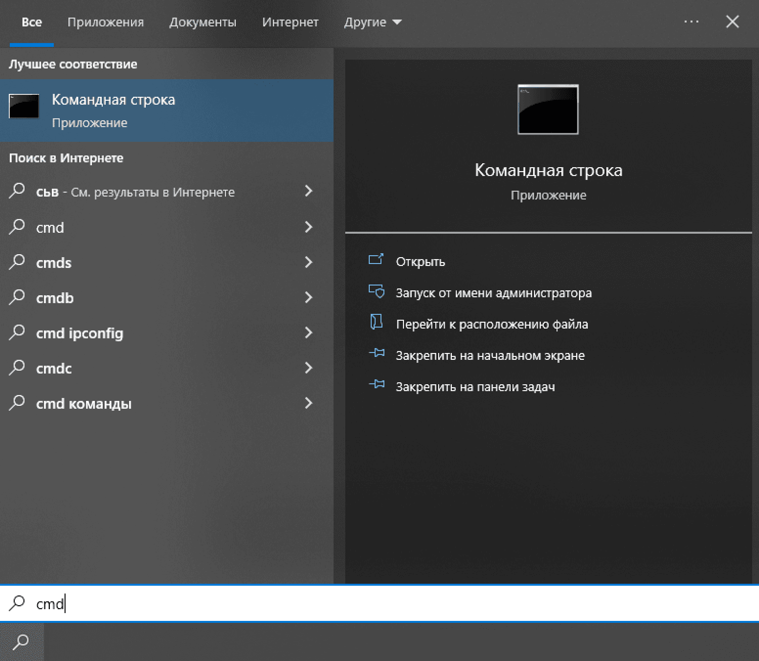 Чтобы проверить доступность вашего доменного адреса, вы можете открыть консоль Windows, введя в поиск программ «cmd»: