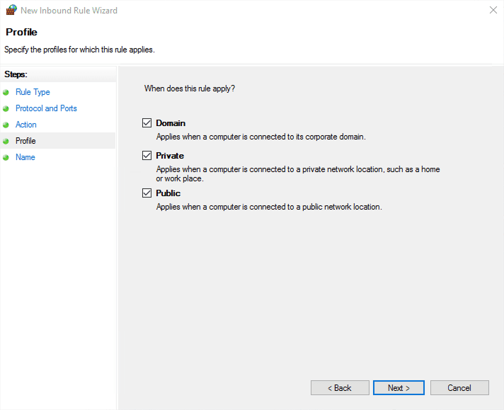 Создаем новое правило для входящих подключений (Inbound Rules) по протоколу UDP для портов 2302-2307, 27016