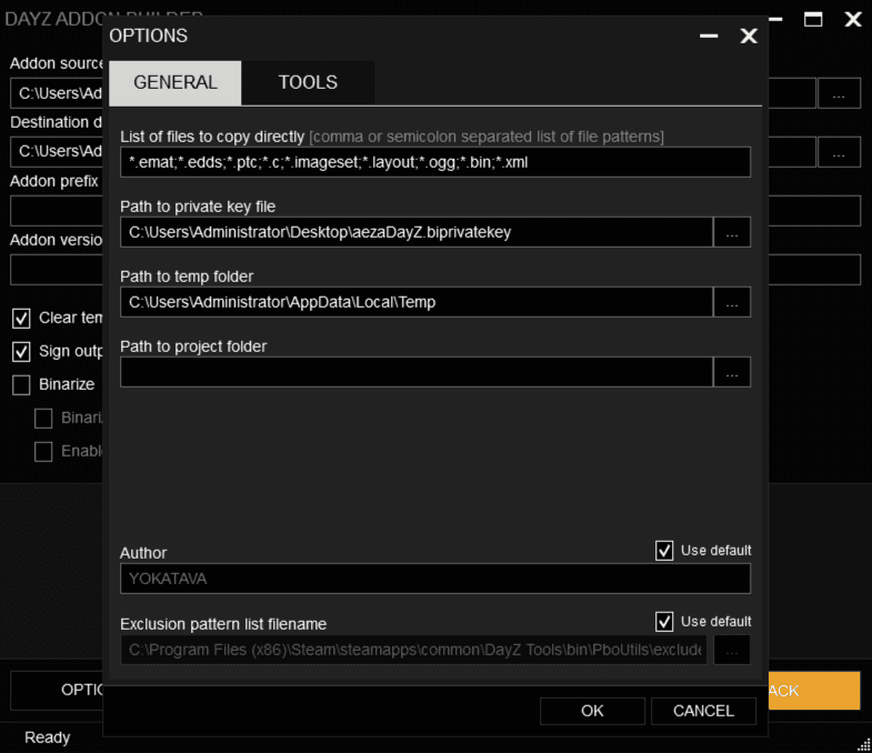 Destination directory or filename (with .'pbo' extension)также добавим расположение папки с модом, но уже с папкойaddons