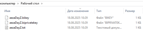 Создадутся 2 ключа и текстовый документ с информацией о них