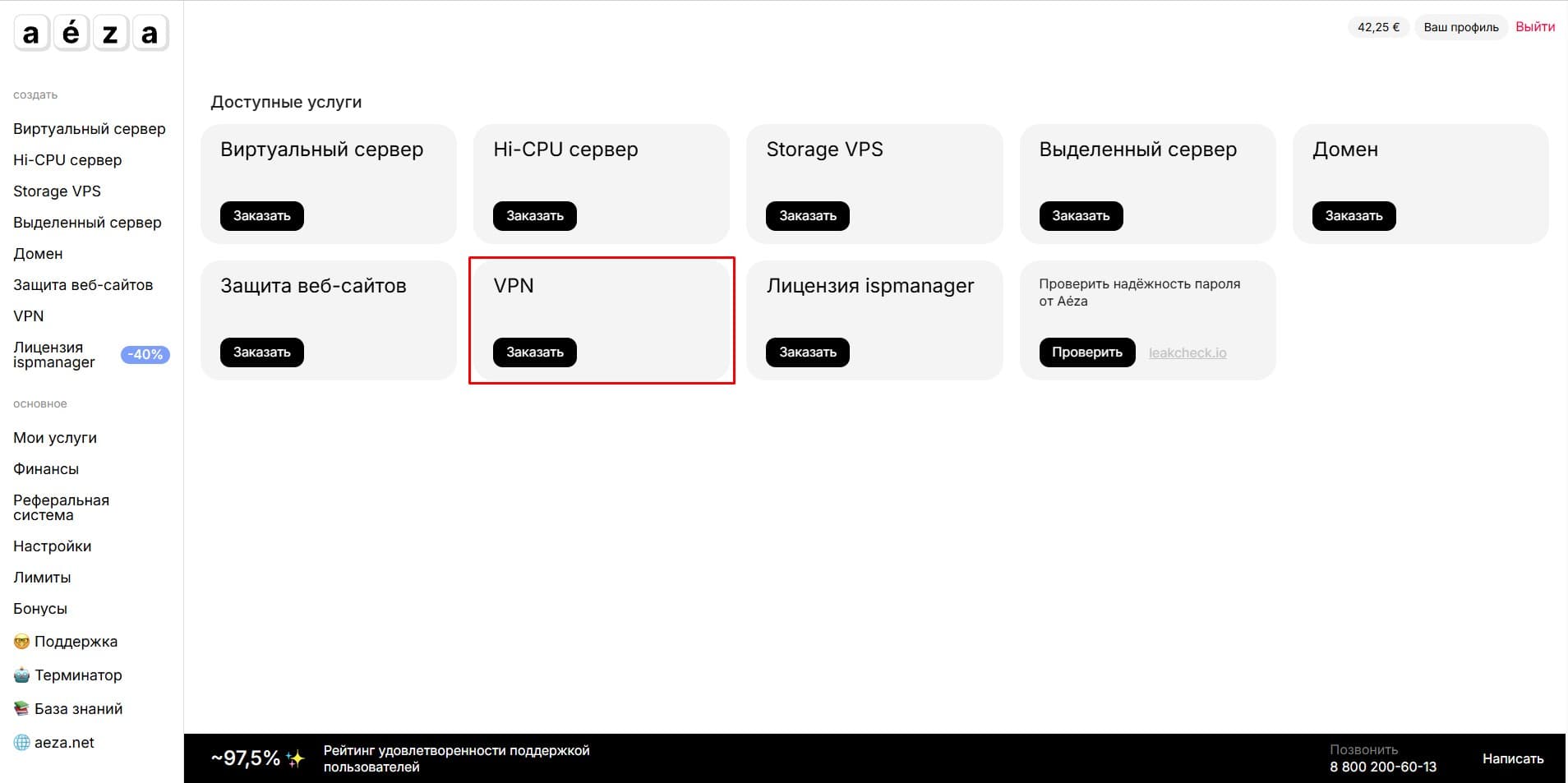 Перейдем на главную страницу личного кабинета и выберем VPN.