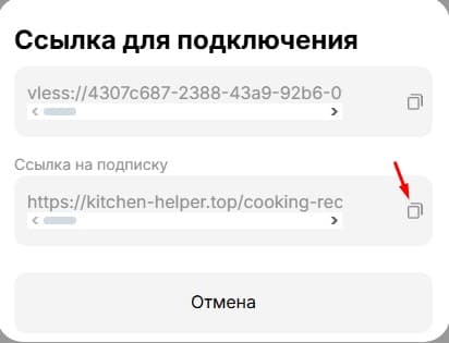 Откроем ссылку для подключения и скопируем ссылку подписки, она нам нужна для импорта конфигурации в программу для подключения.