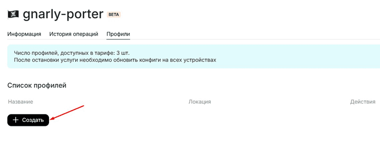 В разделе «Профили» вы найдете подробную информацию о вашей услуге, а также количество доступных профилей. Для каждого профиля вы можете задать его название.
