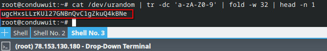 cat /dev/urandom | tr -dc 'a-zA-Z0-9' | fold -w 32 | head -n 1После выполнения команды в консоли будет выведена сгенерированная строка, которую далее мы укажем в файле .env: