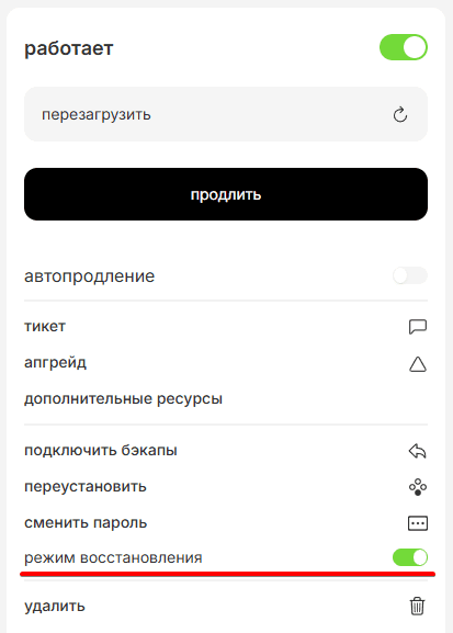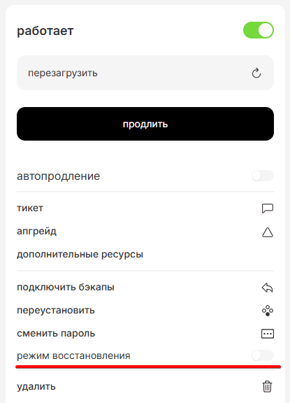 Перенос диска сервера между VDS через Аварийный режим