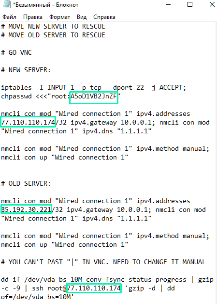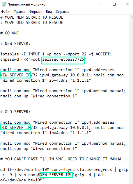 заменяем NEW_SERVER_IP на IP адрес нового сервера,