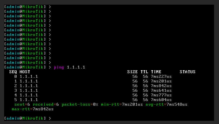 /ip dns set servers=1.1.1.1,8.8.8.8<IPv4>- IPv4-адрес Вашего сервера<Gateway>- Шлюз сервера (по умолчанию 10.0.0.1)