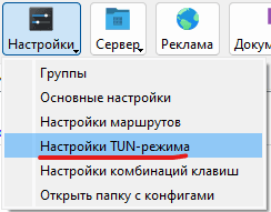 Выберите пункт "Настройки TUN-режима".