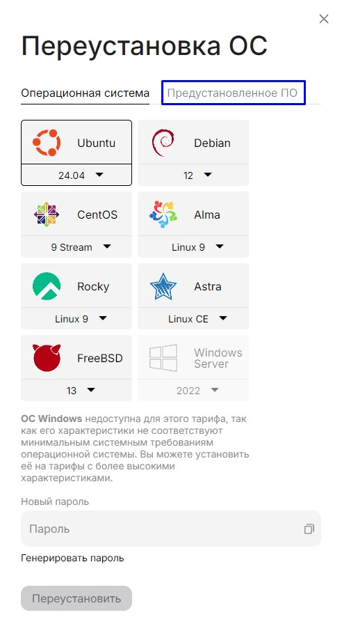 Переустановка ОС будет произведена согласно указанной ОС в скрипте предустановленного ПО, в данном случае будет установлен Ubuntu 22.04 + OpenVPN