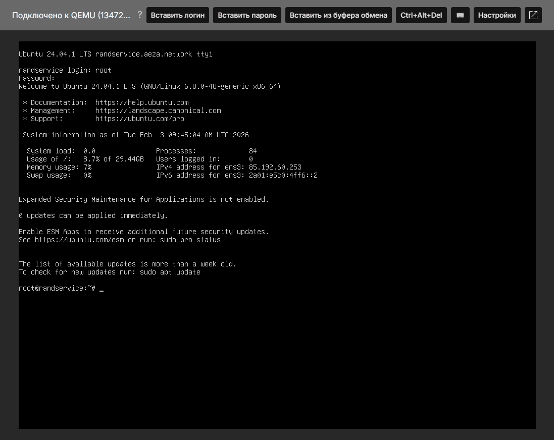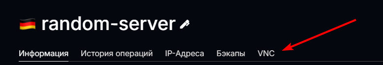 Для начала необходимо войти в VNC, это можно сделать в личном кабинете на странице услуги.