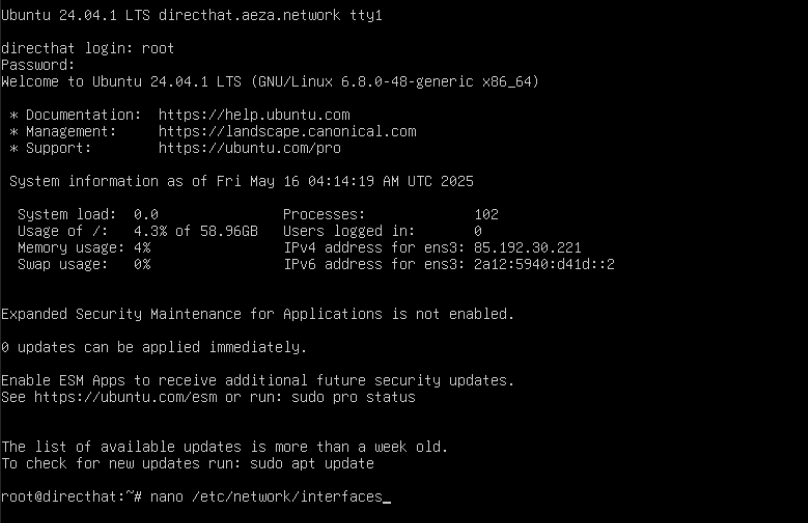 В этой статье будет рассказано и показано как настроить Интернет на серверах Aéza