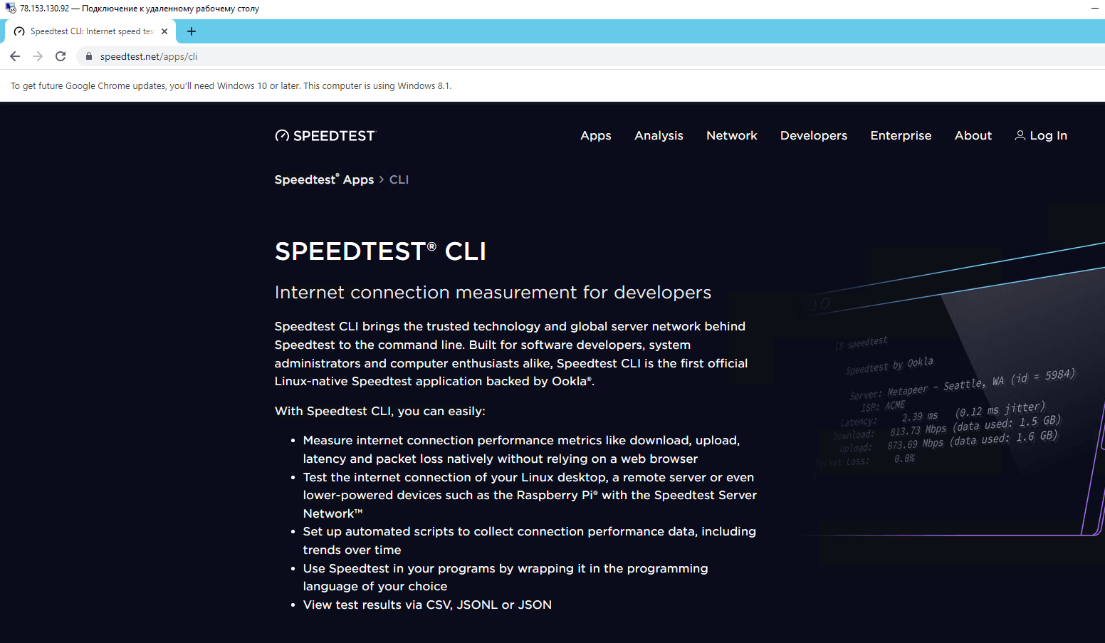Измерение скорости сети [SpeedTest] на ОС Windows