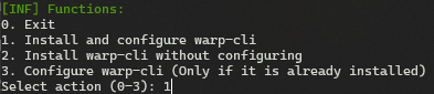 curl -L https://raw.githubusercontent.com/Skrepysh/tools/refs/heads/main/install-warp-cli.sh > install-warp-cli.sh && chmod +x install-warp-cli.sh && ./install-warp-cli.shВыбираем установку скрипта нажмя на 1 и Enter: