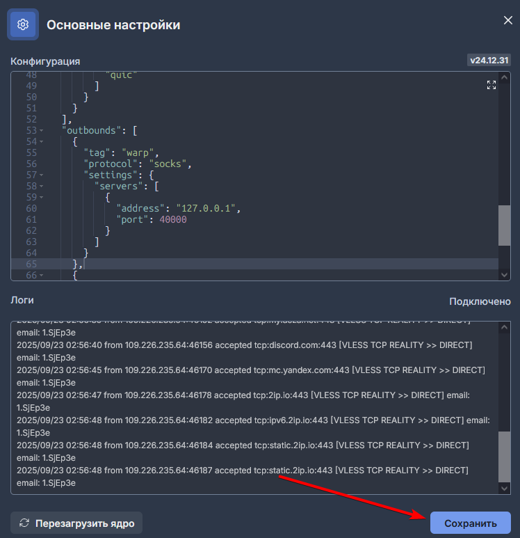 Готово! В результате у вас под VLESS будет отображаться другой IP адрес.