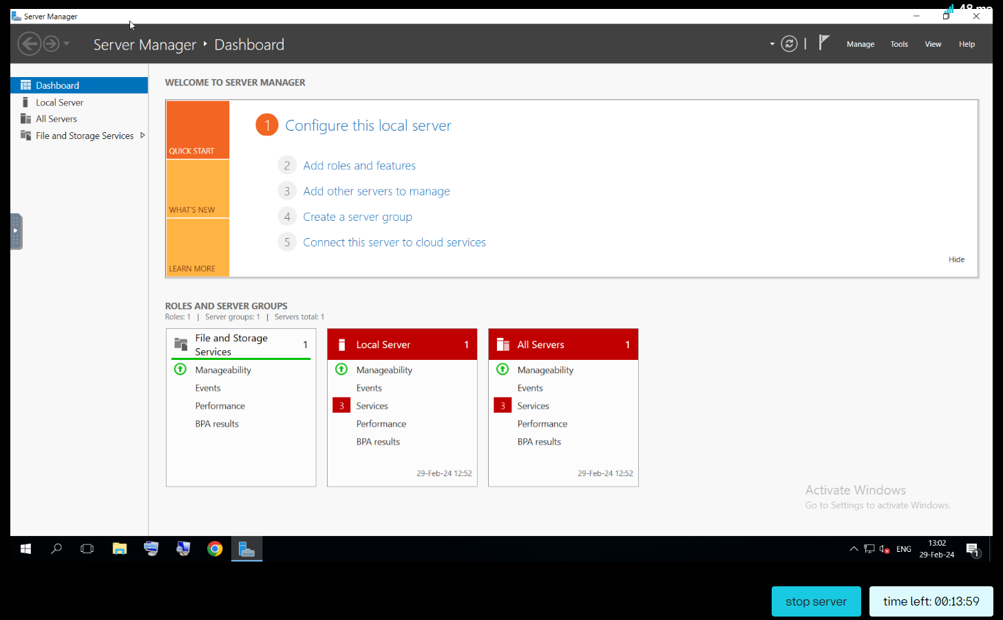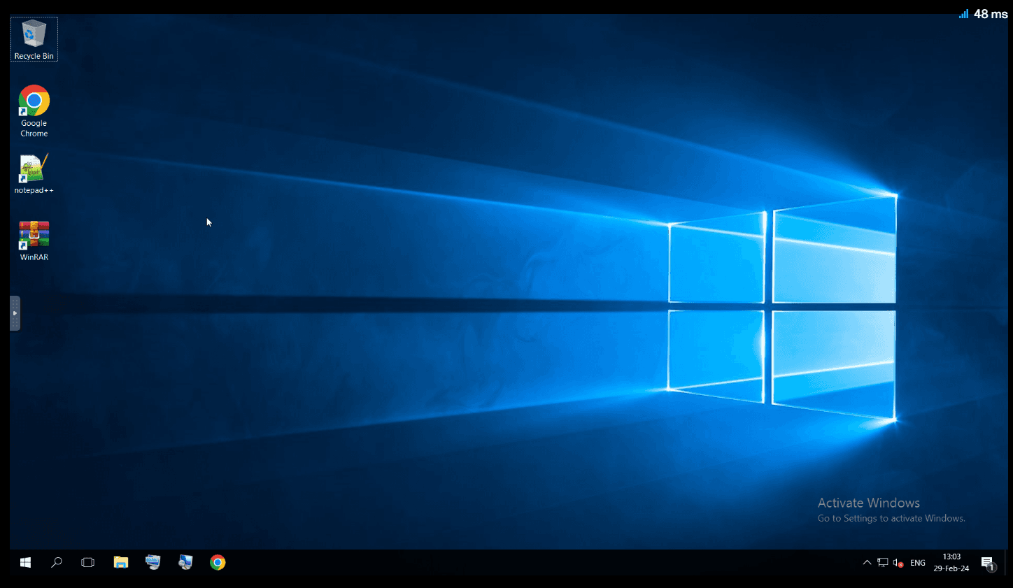 1.3. Через несколько секунд сервер будет готов и мы увидим окно удаленного рабочего стола Windows Server. В системе изначально предустановлен минимальный набор необходимого ПО для работы: текстовый редактор Notepad++, браузер Google Chrome и архиватор WinRAR.
