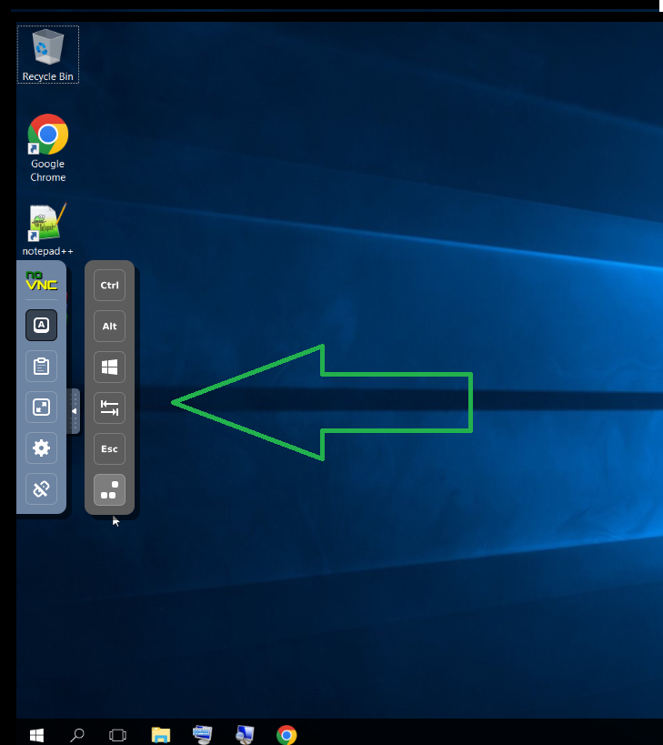 Также заметим, что для выполнения некоторых действий Вам может понадобиться, например, отправить на сервер сочетание клавиш Ctrl + Alt + Del, для этого вы можете воспользоваться панелью инструментов VNC панели нажав на иконку стрелочки с края экрана.